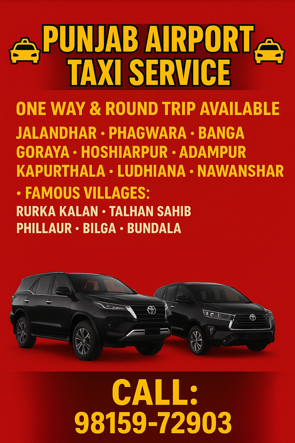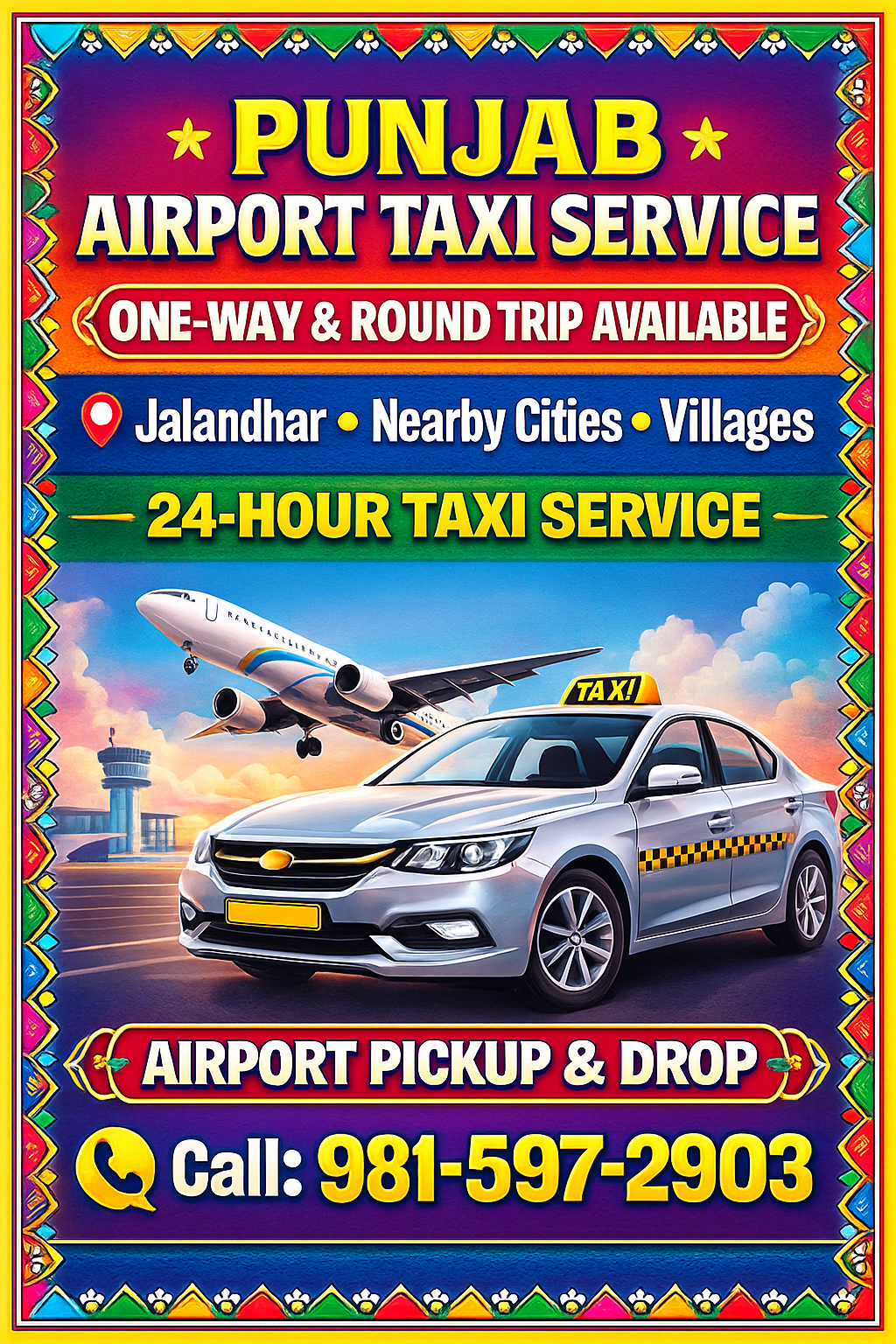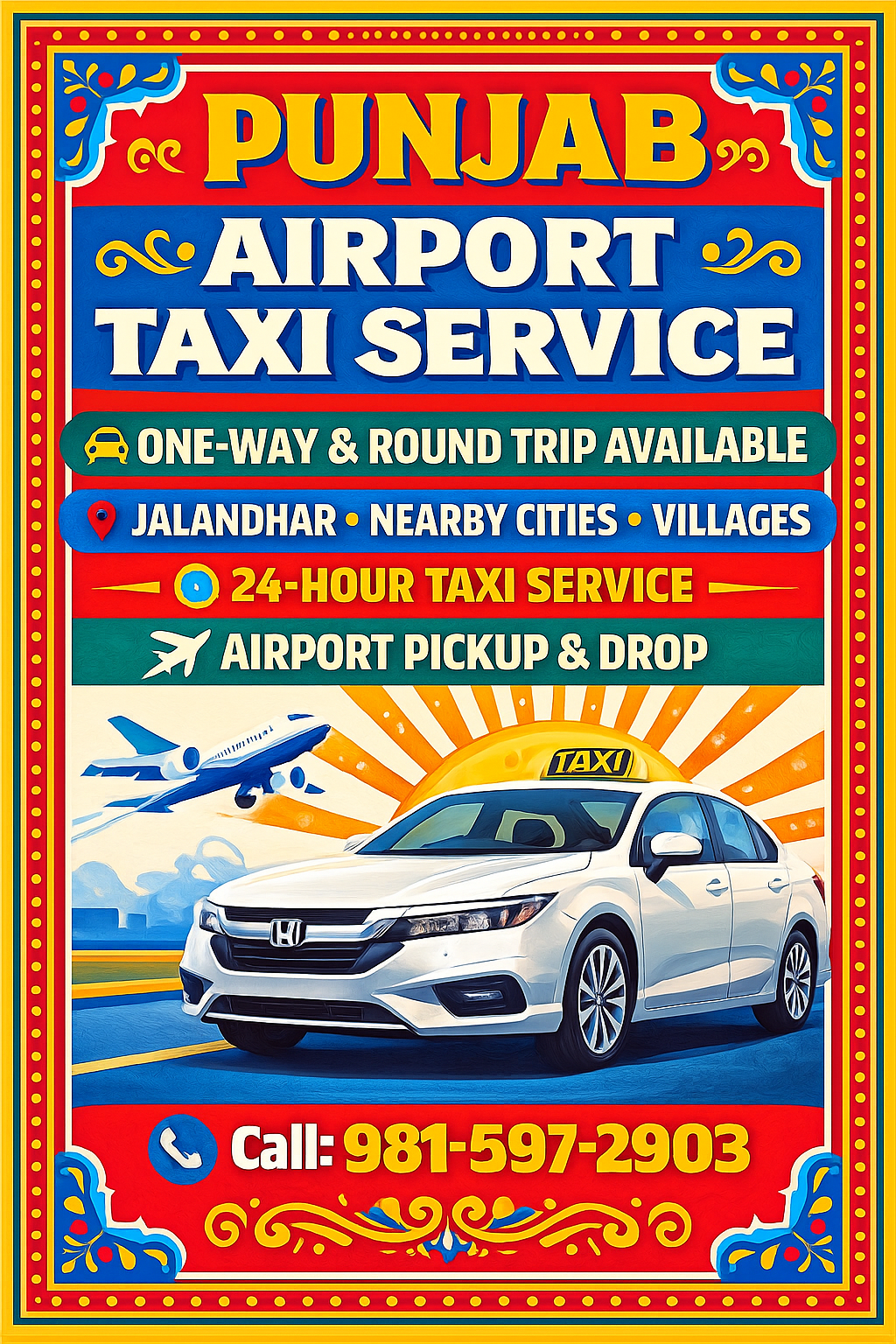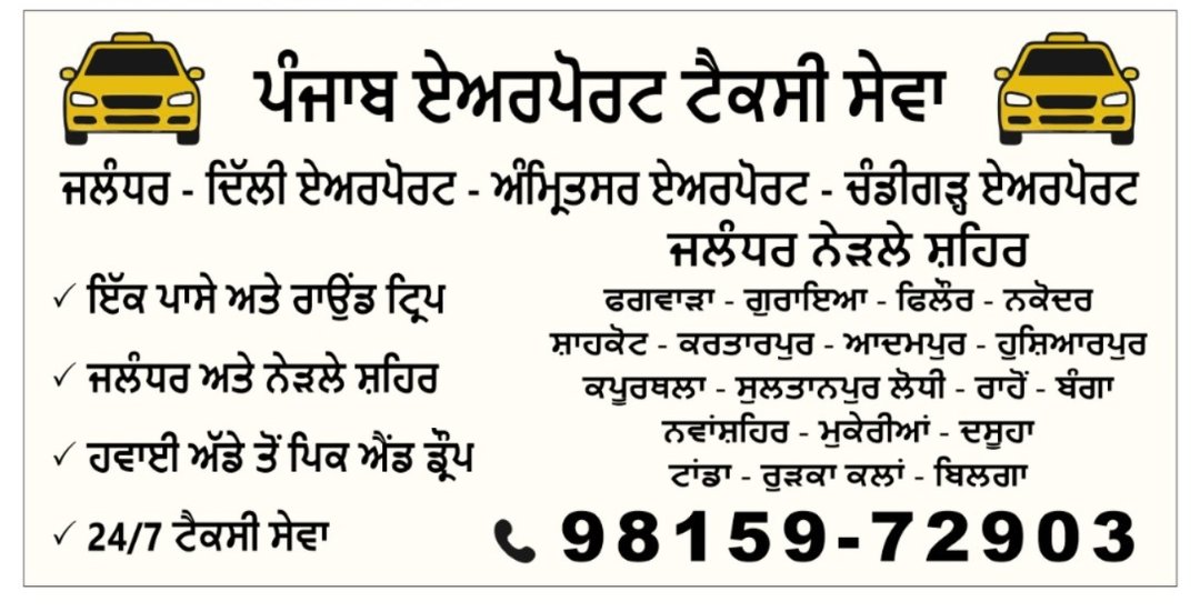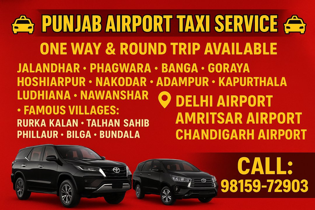 Punjab airport taxi service-Jalandhar!Delhi Amritsar & chandigarh airport